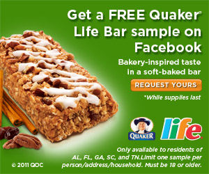 This is soooo cool! Some how Michelle with iHeartPublix got together with Quaker to host this freebie on Facebook! I missed the offer yesterday but hopefully it is still early enough to jump in and grab yours. I just requested one so, so far still avail!