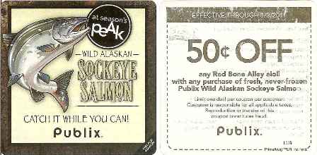 Michelle says that there was a peelie on the AJC Sunday for $.50 off Red Bone Alley Aioli wyb Fresh Never-frozen Publix Wild Alaskan Sockeye (x 8/3/11)