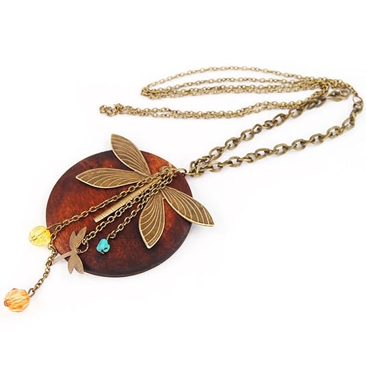 Fashion Lady Charming Wood Dragonfly Pendant Necklace Lovely Style