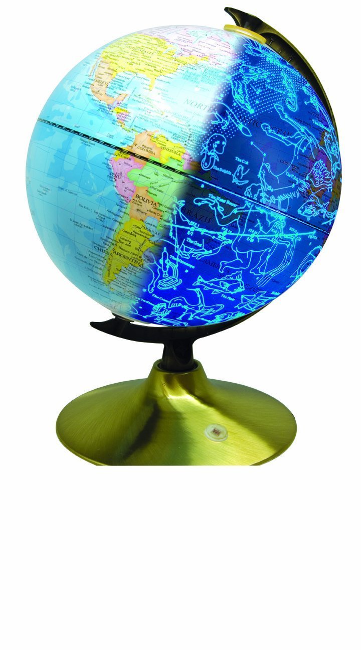 - In daylight this globe shows a geopolitical map of the Earth, and at night it lights up with the constellations of the night sky.