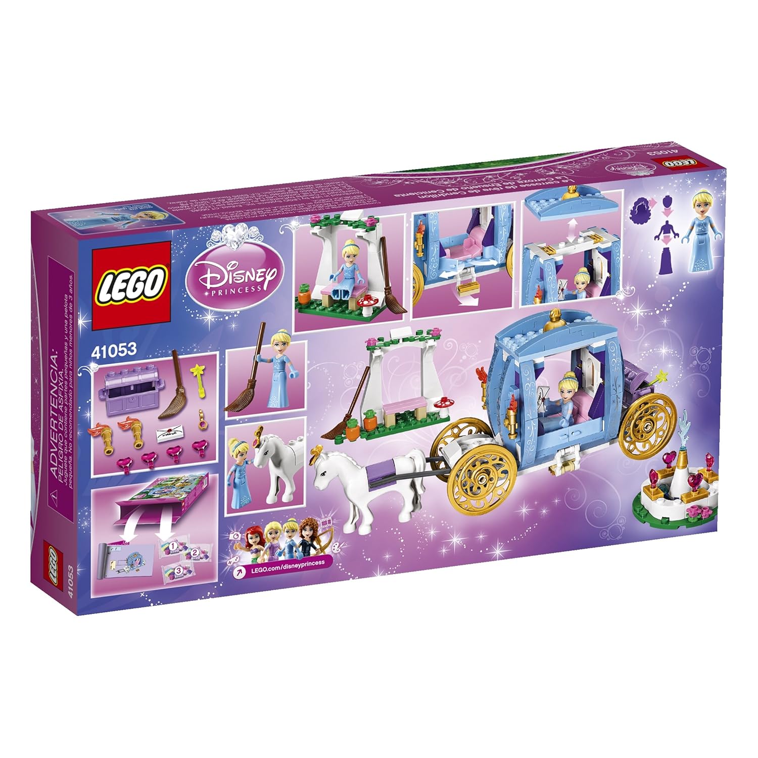 - Accessories include an invitation to the ball, magic wand, broom, flowers and a golden head decoration for the horse
